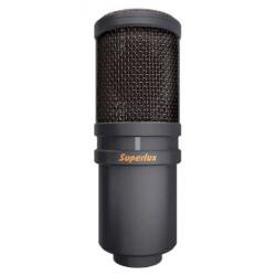 Superlux D108A — Динамический вокальный микрофон. Серия микрофонов Superlux D107 стала новой вехой в мире профессиональных вокальных микрофонов. Данный микрофон отличается компактным и эргономичным дизайном, удобством и простотой использования. Это микрофон с суперкардиоидной диаграммой направленности. Компактный дизайн решетки позволяет достигать "эффекта близости" для низких частот, что при близком расположении к источнику звука добавляет красок басам. Микрофон прекрасно подходит как для живых выступлений, так и для записи на студии