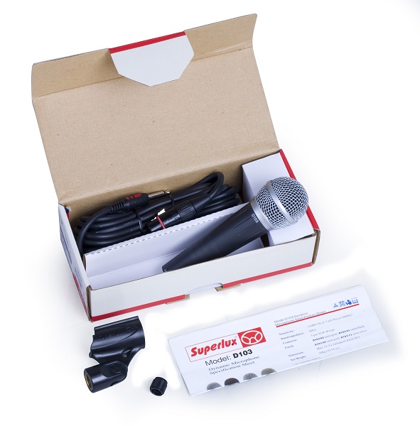 Superlux D103/01P – серия микрофонов с противоударным дизайном капсюля и двойной мембраной купольного типа. Особенности конструкции позволяют микрофону оптимально передавать высокие частоты. Вокал звучит мощно, и при этом сохраняется невероятное множество деталей и обертонов. Все это, а также усиленная конструкция решетки, делает этот микрофон идеальным для караоке.